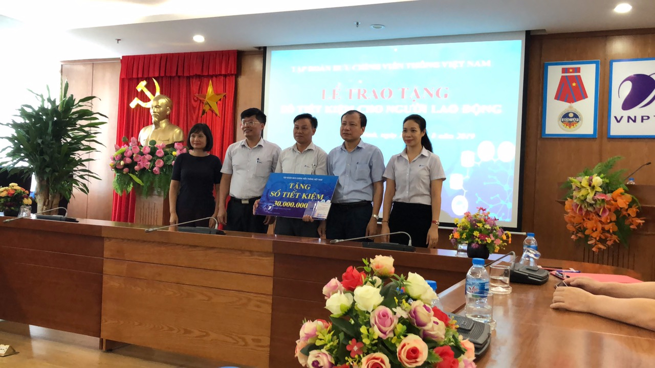 Ngày 16/8/2019 Công đoàn VNPT tổ chức lễ trao tặng sổ tiết kiệm của Qũy hỗ trợ và khuyến khích VNPT cho anh Đào Quang Phúc - nhân viên kỹ thuật, Trung tâm viễn thông Thành phố, thuộc Công đoàn Viễn thông Bắc Ninh có hoàn cảnh đặc biệt khó khăn.