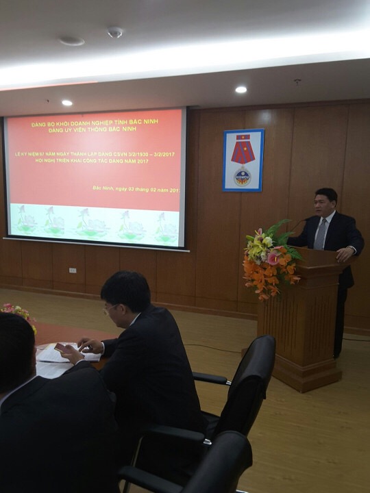 hị quyết Đại hội Đảng bộ Viễn thông Bắc Ninh và các chương trình, nhiệm vụ trọng tâm trong năm 2017 trên cơ sở các định hướng phát triển kinh tế xã hội của tỉnh, các chỉ tiêu, kế hoạch Tập đoàn BCVT Việt Nam giao cho và Nghị quyết Đại hội Đảng bộ Khối Doanh nghiệp tỉnh lần thứ 2, Ngày 03/2/2017 tại Viễn thông Bắc Ninh, diễn ra lễ kỷ niệm 87 năm ngày thành lập Đảng cộng sản Việt Nam và Hội nghị triển khai công tác đảng năm 2017.