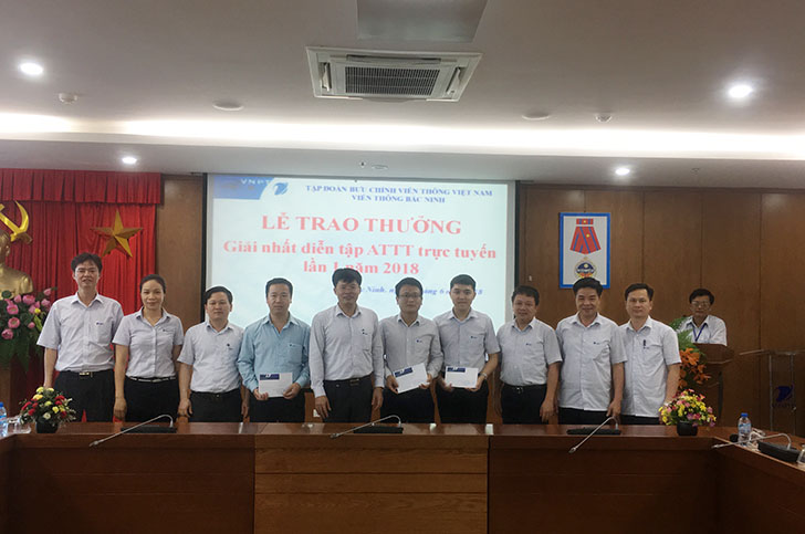 Cuộc thi diễn tập An toàn thông tin do Tập đoàn BCVT Việt Nam tổ chức ngày 27/4/2017 nhằm nâng cao kỹ năng phân tích, đánh giá và đảm bảo ATTT cho các cán bộ kỹ thuật tại 66 đơn vị trực thuộc Tập đoàn. Vượt qua thử thách của Ban Tổ Chức Viễn thông Bắc Ninh đã đạt giải nhất toàn Tập Đoàn với 1.400 điểm. Để kịp thời động viên khích lệ tinh thần, Viễn thông Bắc Ninh đã trao thưởng cho 03 cá nhân tham gia diễn tập, với số tiền 1.000.000 đồng/01 cá nhân.